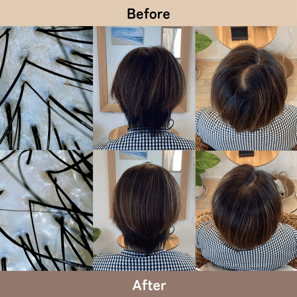 1回で得られる変化は、クリニックの育毛治療に引けを取らないクオリティであるとお約束します。